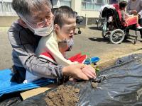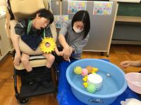 最初は先生と一緒にして、最後は自分で持ったり触ったりできました