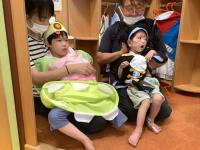 「おにのパンツ」をみんなで歌い終わった後、廊下から何やら大きな音が・・・