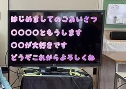 「はじめましてのごあいさつ」の歌に合わせて一人ずつ自己紹介をしました。今年のがんばりたいことを発表し、全員と握手をしました。