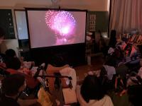 初めに部屋を暗くして川北の花火の映像を大型スクリーンで見ました。