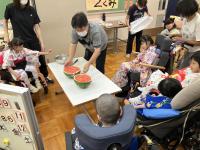 その後は、本物のすいかが登場。一人ひとり持ってみたり叩いてみたり。