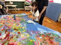 9月の図工では、11月16日(土)の瀬領祭で使用する背景作りをしました。