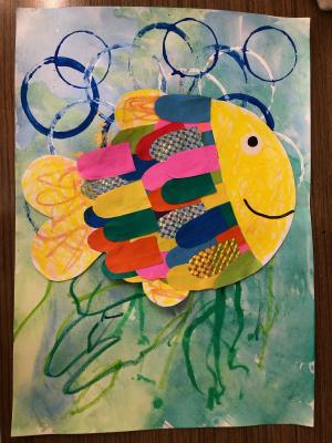 魚は、それぞれ好きな色のクレヨンを使って、思い思いに色を塗りました。
