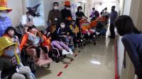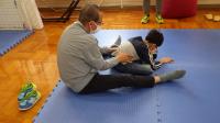 第2回合同学習がありました 2024年11月28日 09時41分 10月31日(木)に合同学習がありました。外部から2名の小学生の参加があり、自立活動の体験をしたり、当日はハロウィンだったので、一緒にゲームや仮装パレードをして楽しんだりしました。午後からは、教員研修会がありました。講師の川谷先生から緊張をゆるめる方法としてリラクゼーションが有効であることや、ゆるめの効果的な方法を教えてもらいました。
