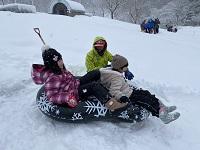 雪もたくさんあり,スリル満点のソリ遊びを楽しんだり,雪合戦や雪だるまづくりを