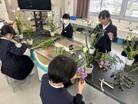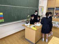 4,5年生を対象にフラワーアレンジメント教室がありました。それぞれお花に思いを込めて生けていました。完成作品はそれぞれ個性がありとても素敵なものになりました。