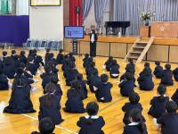 校長先生の話 書き初め大会表彰 縦割り活動(6年生へのメッセージ)