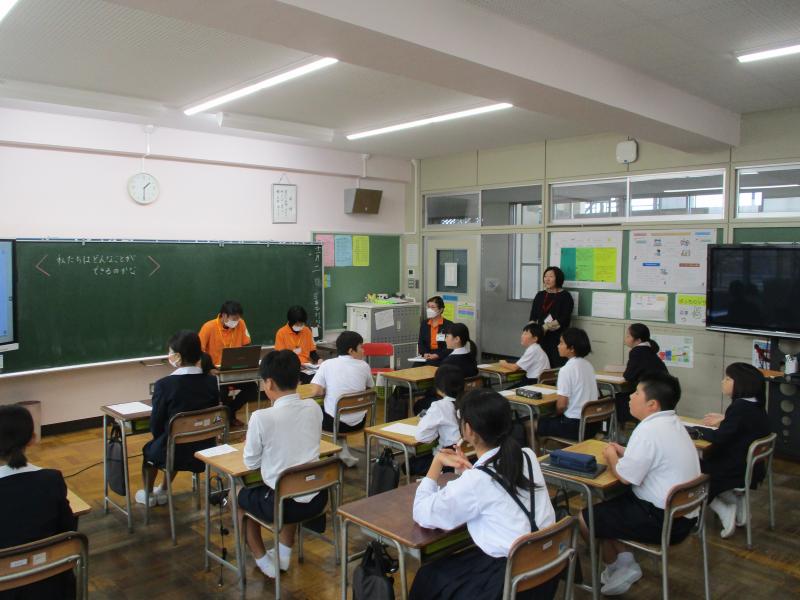 11月2日(木) 認知症サポーター養成講座がありました。認知症とはどういうものなのか,どのような対応をすればよいのかということを学びました。児童は,自分たちが普通にできていることが認知症になるとできなくなることを知り,相手のことを考えて行動することの大切さを感じていました。