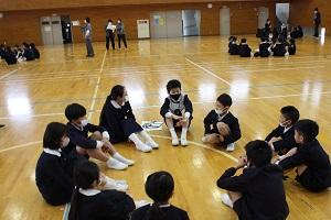 19日(水)5限目にたてわり集会がありました。今年度のたてわりのスタートです。6年生を中心に行事や日常生活で活動します。まずは、グループに分かれて自己紹介やグループのめあてを決めました。これから協力して活動してほしいですね。