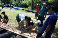 7月25日(火)26日(水)鹿島少年自然の家に自然体験学習に行ってきました。テーマは「協力」いかだ体験、野外炊飯、肝試し、追跡ハイキングを行いました。日が照り暑い中でしたがどの活動も協力しながら楽しむことができました。充実した2日間になりました。