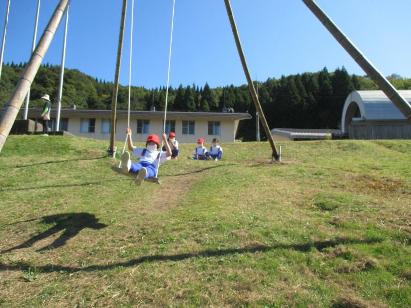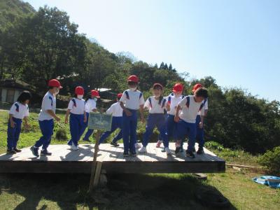 10月7日に1・2年生で秋見つけのために鹿島少年自然の家へ行ってきました。爽やかでいい天気の中、くりにまつぼっくり,どんぐり,他にも秋の虫などたくさんの秋を見つけることができました。そして,その秋のものを使って,カードスタンドを作りましたよ。午後からは,ハイジのブランコに,ジャンボシーソー,芝生でのソリ滑りをして楽しみました。たくさん遊んで,帰りは爆睡のみんなでしたよ。