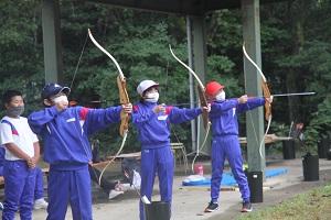 あいにくの雨ではありましたが,アーチェリーとマイスプーン作りをしてきました。活動中はあまり雨が当たらず,天気の影響を受けずに活動できて良かったです。アーチェリーに関しては,初めての体験でしたが全員的に当てることができました。
