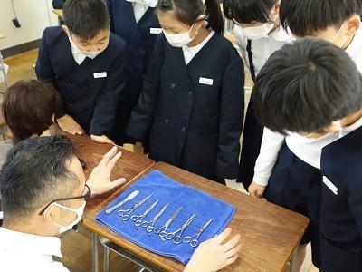 教育ウィーク1日目,ご参観ありがとうございます。この日は,5年生と6年生でそれぞれ体験教室がありました。5年生は「マイタウンティーチャー」としてHope Hair‘sの店長さんに来ていただき,「仕事」というテーマで講演と体験教室を行っていただきました。6年生は箔座さんに来ていただき,金箔を使った作品作り体験を行いました。