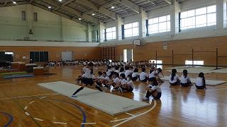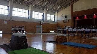 向粟崎小学校で器械運動交歓会がありました。子供たちは緊張しながらも、一生懸命頑張ってきた練習の成果を発揮していました。