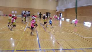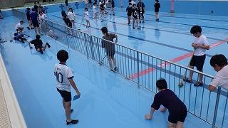 体育館でプロサッカーの方々と一緒に、体を使って楽しく運動をしたりサッカーをしたりしました。