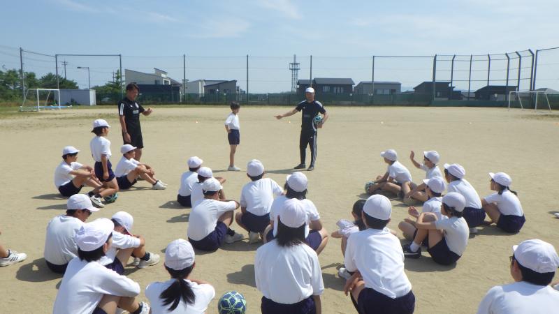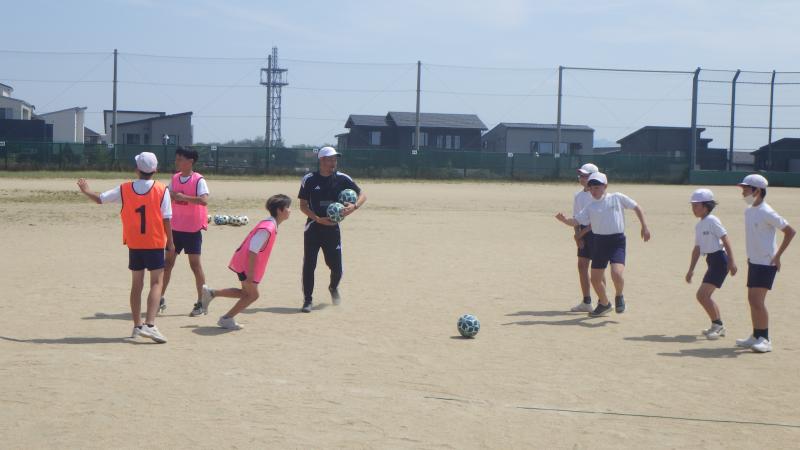 元Jリーガーの方々が講師となり、みんなで楽しくボールを使い活動することができました。