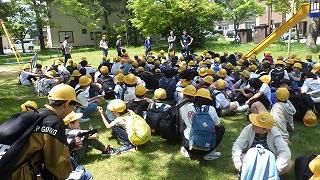 5、6年生で木谷公園へ遠足に行ってきました。片道約7㎞の道のりを、みんなで励まし合って歩き通すことができました。晴天の中、みんなで一緒に仲良く遊んだり、お弁当を食べたりすることができ、子供たちはとても楽しんでいるようでした。