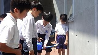 理科の学習でホウセンカ、ヒマワリ、ピーマン、オクラの種を植えました。ぐんぐん生長していけるように、子供たちはたくさん水をあげていました。