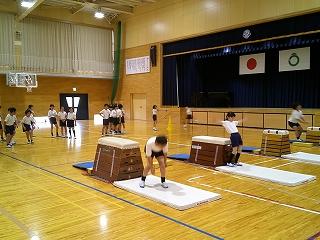鉄棒・マット・跳び箱に分かれて、種目別の練習が始まりました。