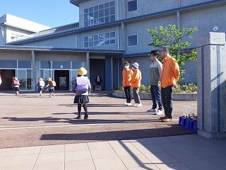 今日は民生委員・児童委員の方々にあいさつ運動をしていただきました。