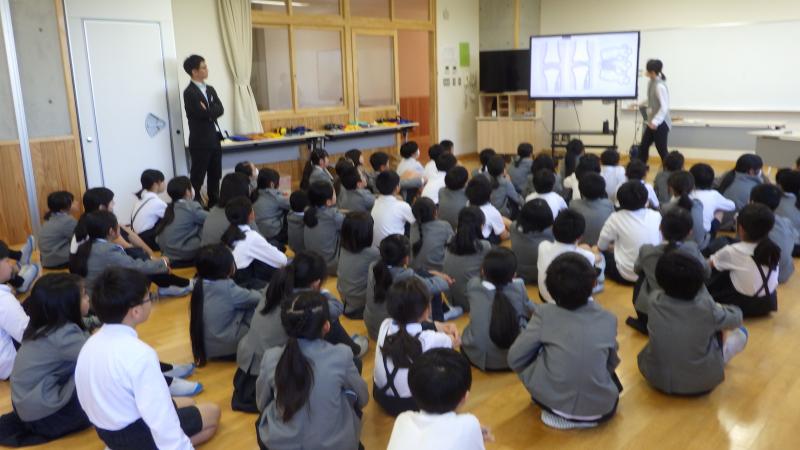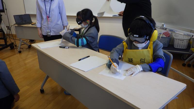内灘町地域包括支援センターの方に来て頂き、高齢者疑似体験やクイズ、劇を通して、高齢者や認知症についての理解を深めることができたようでした。