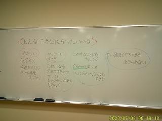 子供たちから出てきた意見をもとに学年目標を決めました。この目標を意識して過ごせるように指導していきたいです。
