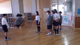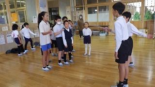 友達同士で見合ったり、先生にアドバイスをもらったりしながら、どの学年も一生懸命練習に取り組んでいます。5,6年生が1,2年生に教えている姿も印象的でした。