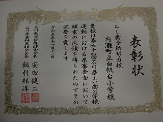 第64回石川県よい歯の学校運動の「むし歯予防努力校」の賞状が学校に届きました!