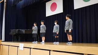白帆台小学校は「白帆台クイズ」と「WAになって踊ろう」の歌とダンスを発表しました。