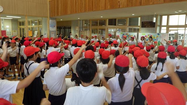 昼休み、ふれあいグループがありました。6年生が1~5年生にそれぞれの応援の仕方を教えてあげていました。