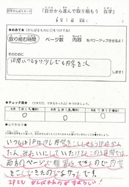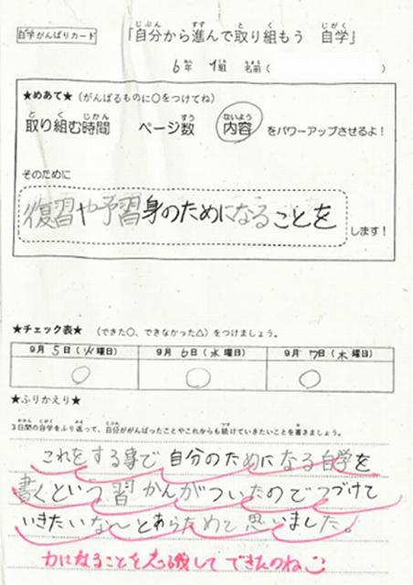 その後、自分が頑張りたいことをカードに書いて、3日間取り組んでみたところ、パワーアップ自学がぐんと増えました!