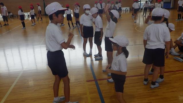 3年生は初めてのソーラン。4年生に教えてもらいながら、みんな一生懸命に練習しています。