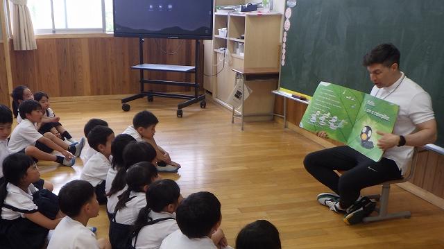 1年生は月に1度、ケリン先生と外国語活動(英語)をしています。6月は色についての学習で、色の単語が出てくる絵本の読み聞かせをしていただきました。楽しみながらいろいろな色の単語を聞いたり話したりできました。