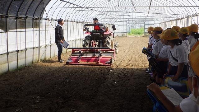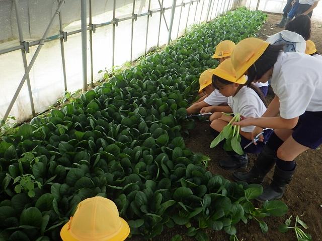 3年生の社会科では、現在「農家の仕事」について学習しています。6月29日(木)に笠間農園さんへ行き、小松菜づくりの見学をしました。実際にお仕事の様子について見たり聞いたりして学んだことを、子どもたちはたくさんワークシートに書き込んでいました。また、小松菜を収穫し袋に詰める作業も体験させていただき、子どもたちはとてもうれしそうな様子でした。