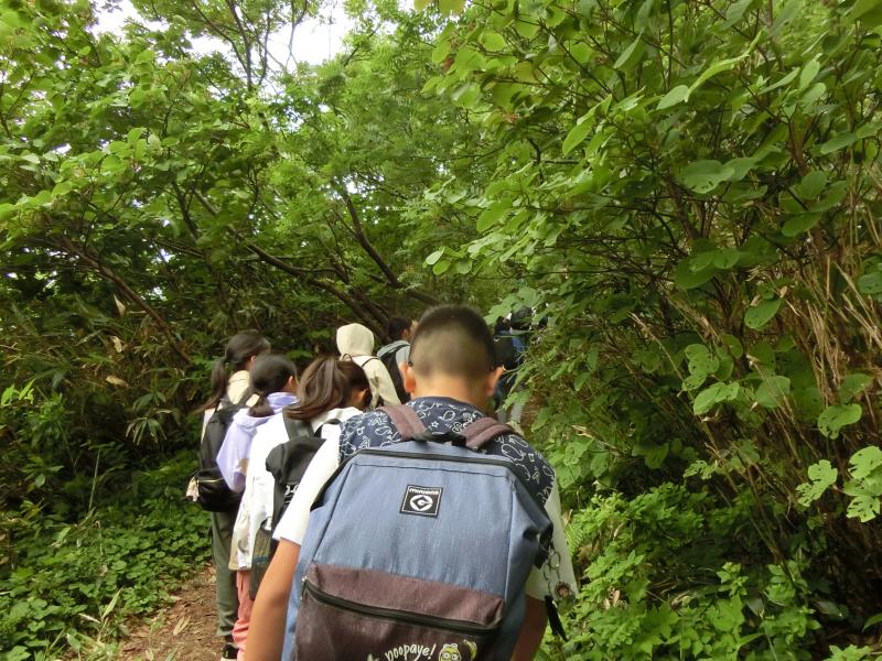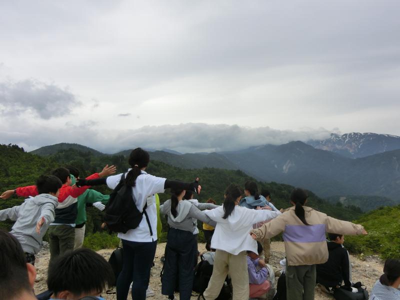 1日目の登山では、三方岳に登りました。途中険しい道もたくさんありましたが、全員で声を掛け合って協力して登り切りました。山頂では風が強かったのですが、「頑張った後のお弁当おいしい!!」や「頑張ってよかったー」などの声がたくさんあり、児童は頑張ってやり切ると達成感が多く得られると実感していました。