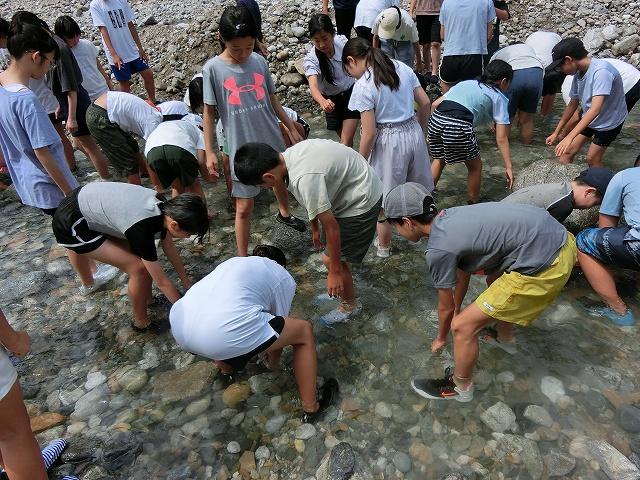 二日目は、イワナつかみを行いました。「命をいただく」ということに感謝し、一生懸命探して捕まえ、上手に捌いていました。