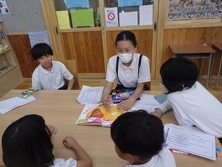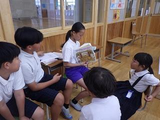 7月11日(金)に国語の学習で、自分のおすすめの本を1年生に紹介する、ブックトークを行いました。6年生は、本番までに、本のあらすじを分かりやすくまとめたり、登場人物になりきって読み聞かせの練習をしたりと1年生が「読みたい!」と思ってくれるような工夫を考えました。