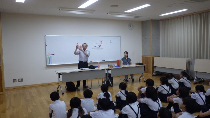 4年生では総合的な学習の時間に体の不自由な方やその生活について学習しています。石川県視覚障害者協会の方にお越しいただき、お買い物の仕方やお金の区別の仕方、白杖や点字ブロックなどについてお話を聞きました。信号などで困っている様子を見かけたら声をかけてあげてほしいというお願いに、返事を返す様子が見られました。