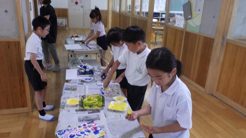 今回は、夏野菜を使ったスタンプで絵を作り上げました。