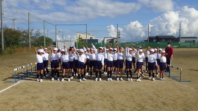 さわやかな空のもと、これまでかけ足運動でつけてきた力を出し切りました。
