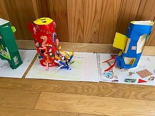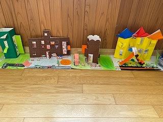 2年生で初めてカッターを使い、窓のあるおうちをつくりました。