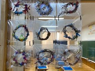 生活科で育てたあさがおのつるを使ってリースをつくりました。