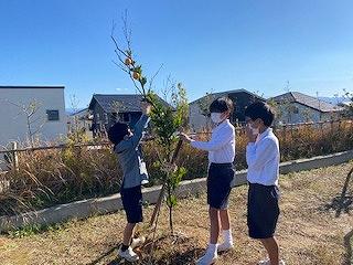 2022年11月21日 13時10分顔晴れ!しらっこ果樹園の樹木に園芸委員会がプレートをつけました。