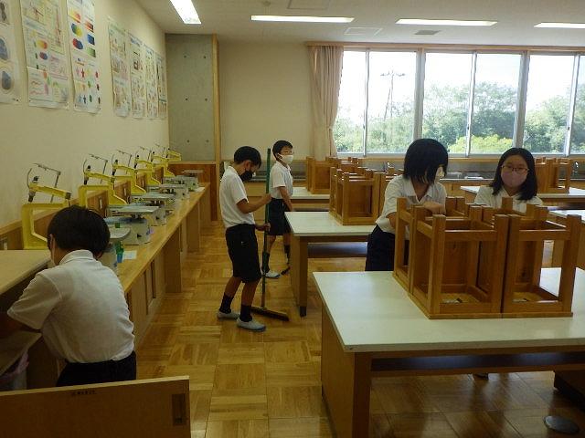 2学期の一週間は、コロナ対策のため、いつものふれあいグループ(異学年集団)ではなく、各学年教室を中心にそうじをしています。