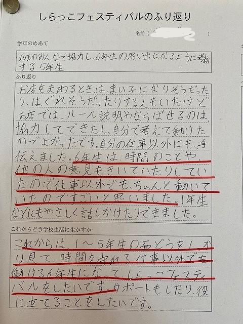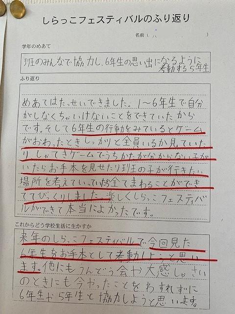 5年生の「しらっこフェスティバル」の振り返りの中に、「6年生すごい!」の声がたくさんありました。