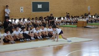 4年生のが器械運動交歓会にむけてリハーサルとして3年生に練習した技を見せてくれました。跳び箱やマットの技を真剣にみて「すごい!」「かっこいい!」と声が上がっていました。4年生のかっこいい演技に「僕たちも来年負けないようにがんばりたい!」と意気込んでいる様子でした。