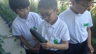 大きく立派なきゅうりに子供たちは大興奮でした。(大きすぎました・・・)