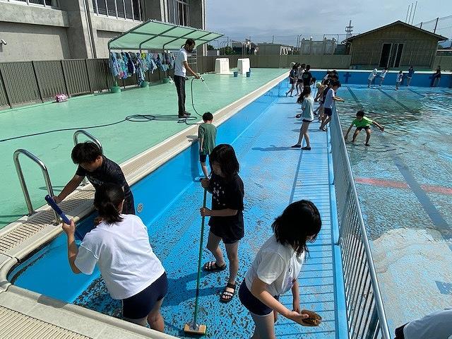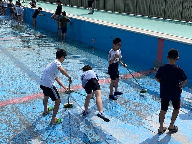 今年も、6年生が学校代表としてプール掃除を行いました。