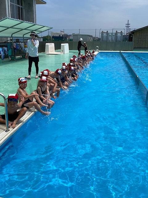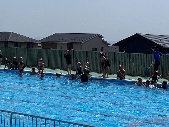 プールの際は、安全に学習できるように二人体制で指導しています。