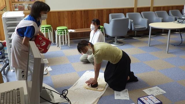 万が一のプール事故に備え、職員の救命救急研修を行いました。